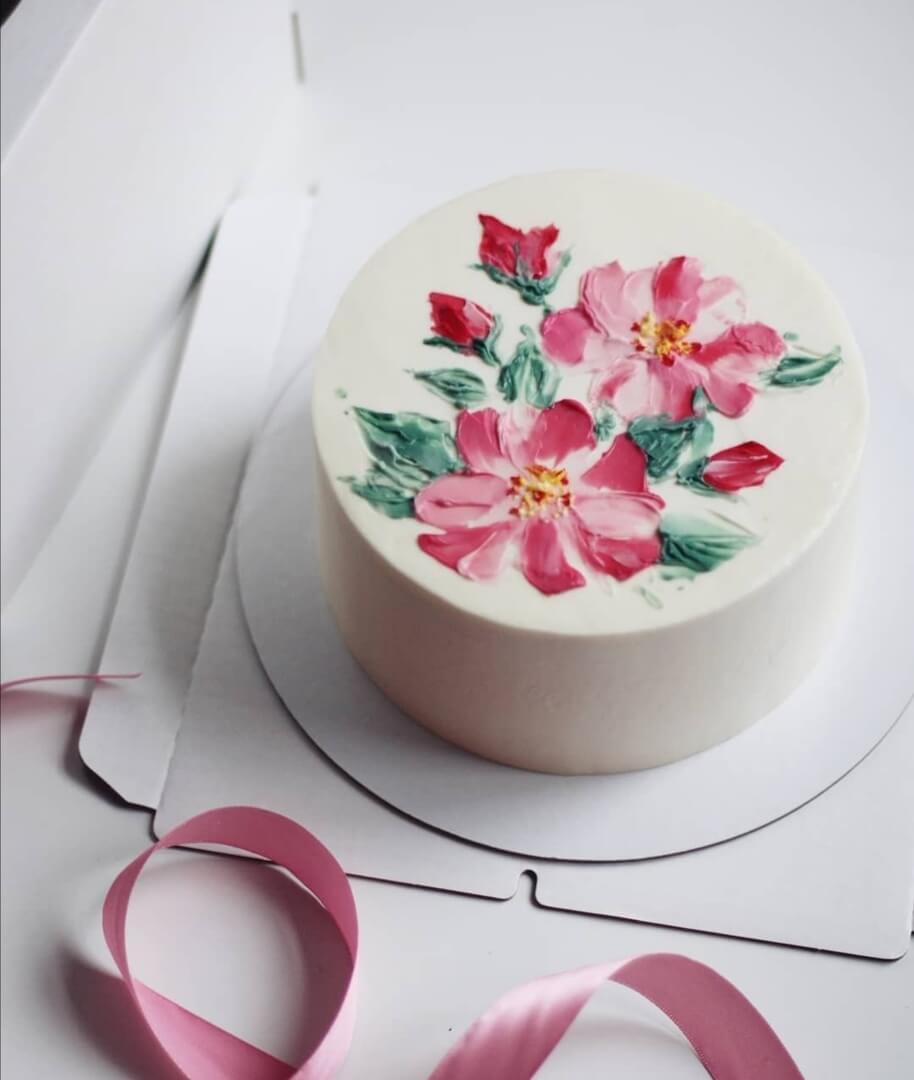 Скромный, но безумно нежный тортик с небольшой росписью цветами