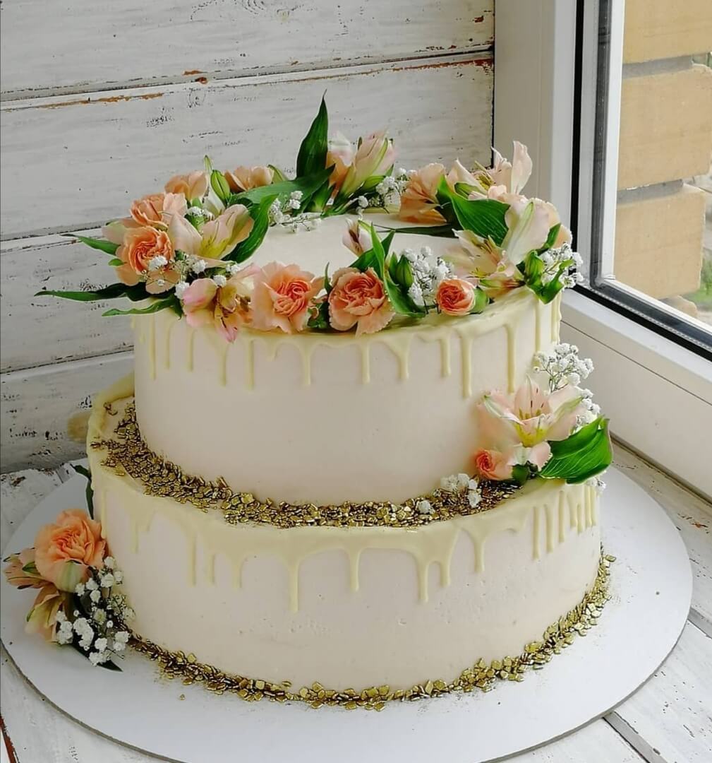 Пусть ваша любовь будет сладкой, как ваниль, и красивой, как этот потрясающий свадебный торт